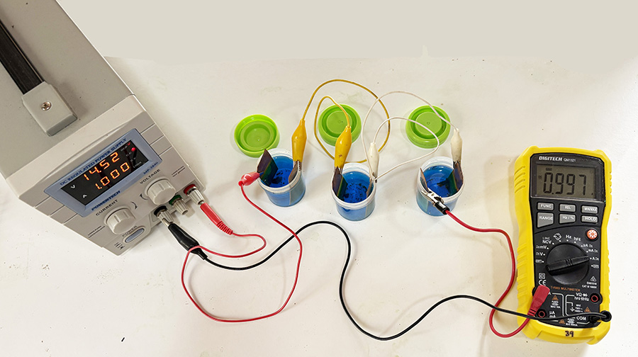 Or you could investigate current density (amperage of the electroplating current divided by the surface area of the part) in this process strongly influences the deposition rate, plating adherence, and plating quality. The higher the current density, the faster the deposition rate will be, although you get poor adhesion. You may even produce some nice jewellery for mum.